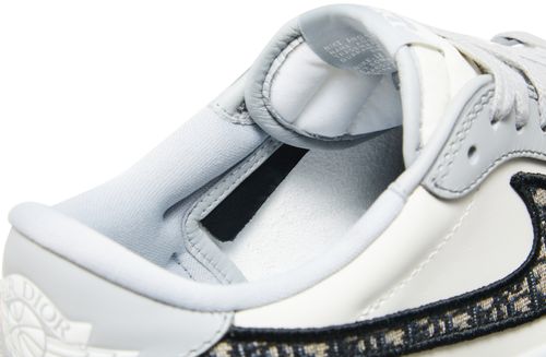 Launching as part of a larger collection with the esteemed Parisian fashion house, the Dior x Air Jordan 1 Low sports a simple two-tone color scheme on the upper, featuring a white Italian leather base with subtle grey leather overlays. Branding elements include a Dior Air woven tongue tag, Dior Oblique jacquard Swoosh and a Dior Wings logo on the heel tab. The made-in-Italy kicks are finished with translucent outsoles revealing additional branding hits underneath.
